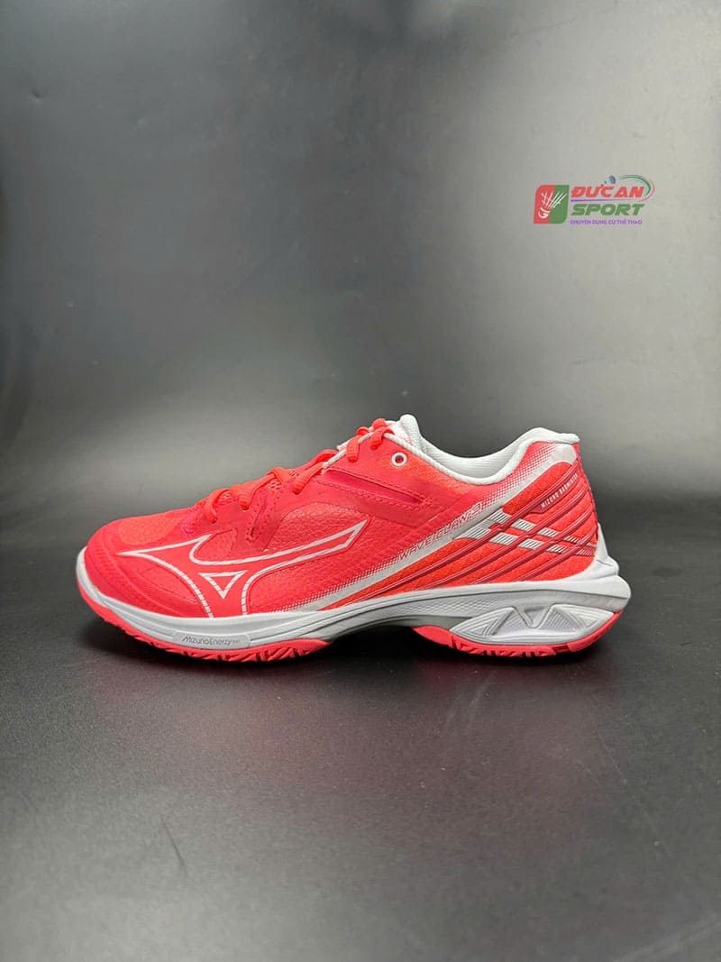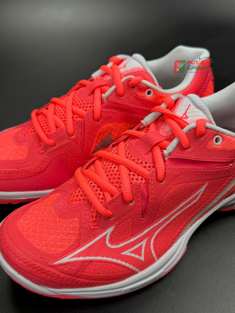 Ngay từ cái nhìn đầu tiên, Giày Cầu Lông Mizuno Wave Claw 3 gây ấn tượng mạnh mẽ với tông màu chủ đạo là Hồng Neon. Đây không phải là màu hồng sến súa, mà là tông màu thể hiện sự năng động, nhiệt huyết và mạnh mẽ. Màu hồng neon giúp người chơi nổi bật hoàn toàn trên nền sân thảm xanh hoặc sân gỗ tạo cảm giác về sự nhanh nhẹn và tràn đầy năng lượng. Logo Mizuno màu trắng được đặt tinh tế ở má ngoài, tạo độ tương phản cao, giúp nhận diện thương hiệu rõ ràng. Phần đế giữa màu trắng kết hợp với đế ngoài cao su tạo nên tổng thể hài hòa nhưng vẫn vô cùng bắt mắt.