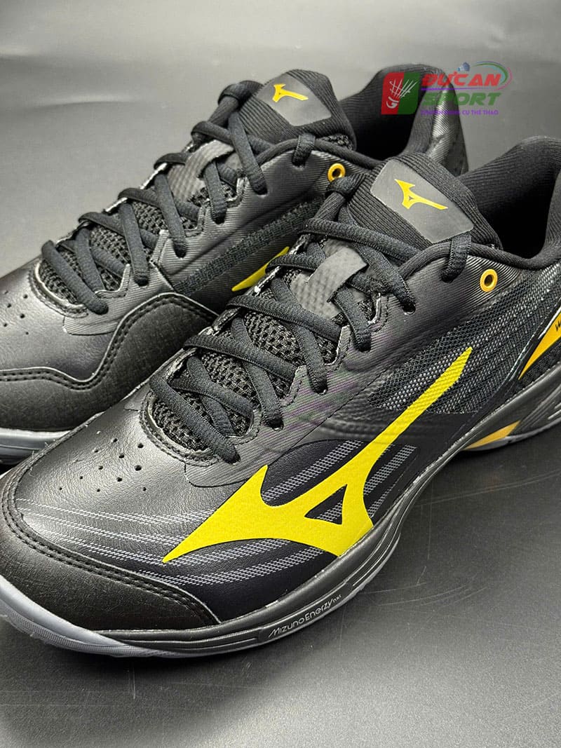 Giày được thiết kế với tông màu Đen phối Vàng Kim mang lại vẻ đẹp quyền lực và sang trọng. Logo Mizuno màu vàng nổi bật trên nền đen huyền bí tạo nên một tổng thể vừa chuyên nghiệp, vừa đậm chất thể thao. Form giày được thiết kế ôm sát nhưng vẫn đảm bảo sự thoải mái tối đa cho bàn chân.