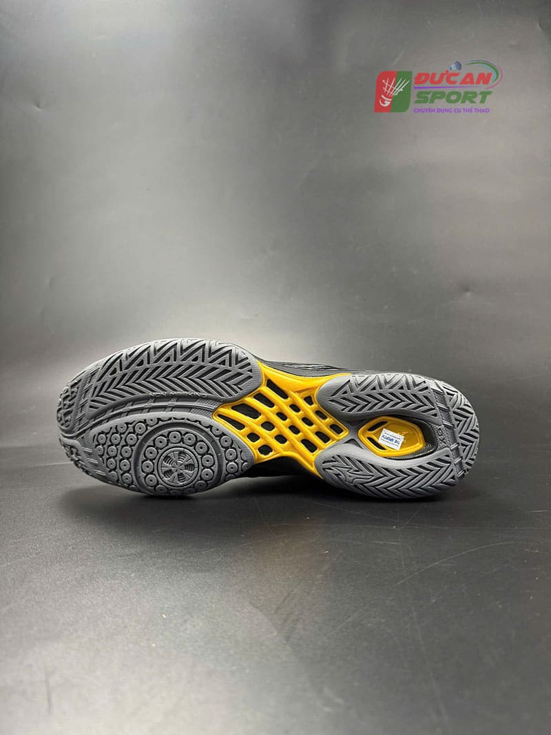 Đế giày được làm từ cao su XG cao cấp, cho độ bám sân tuyệt vời ngay cả trên mặt thảm hơi trơn. Rãnh chéo D-Flex Groove ở giữa đế giúp người chơi chuyển hướng nhanh chóng và linh hoạt mà không lo bị lật cổ chân.