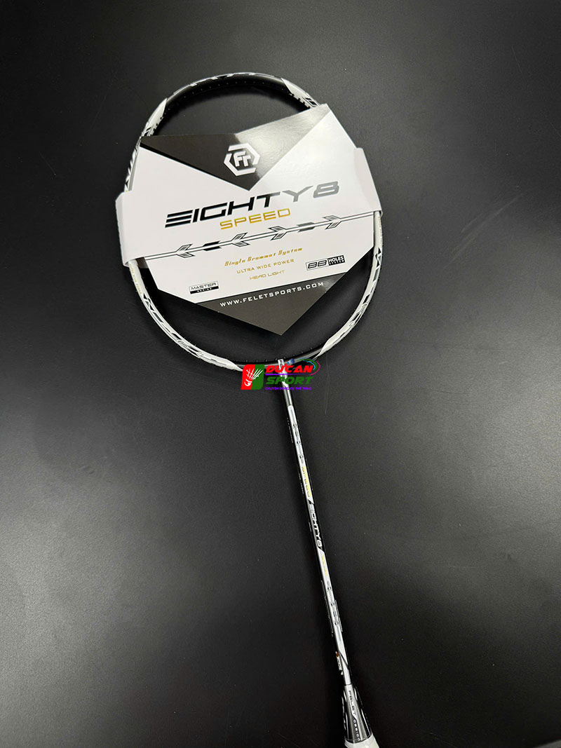 Nếu bản Power là "Hỏa thần" tấn công, bản Control là "Bạch mã" điều cầu, thì Felet Eighty 8 SPEED chính là "Bóng ma tốc độ" – thoắt ẩn thoắt hiện và kết liễu đối thủ bằng những pha cầu nhanh như điện xẹt. Những pha cầu đôi công chớp nhoáng đòi hỏi một cây vợt phải có khả năng lướt gió tốt và xoay trở linh hoạt. Hiểu được điều đó, Felet đã tung ra phiên bản Eighty 8 SPEED hoàn thiện bộ sưu tập Woven Eighty 8 đình đám. Không ồn ào như bản Power, Vợt Cầu Lông Felet Eighty 8 SPEED chinh phục người chơi bằng vẻ ngoài lạnh lùng và hiệu năng thực chiến đáng nể. Hãy cùng Đức An Sport khám phá xem "sát thủ bóng đêm" này có gì đặc biệt.