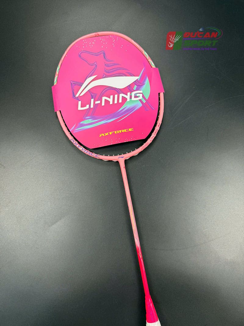 Điểm nhấn khó quên nhất chính là phối màu Hồng Pastel chủ đạo, chuyển dần sang các tông đỏ và tím nhẹ nhàng ở phần khớp chữ T và khung vợt. Đi kèm là chiếc bao vợt Axforce màu hồng đồng bộ cực kỳ sang chảnh. Đây là một bước đi táo bạo của Lining, biến cây vợt thành một tác phẩm nghệ thuật thực thụ, mang lại cảm giác tươi mới, tràn đầy năng lượng cho những trận cầu khai xuân.