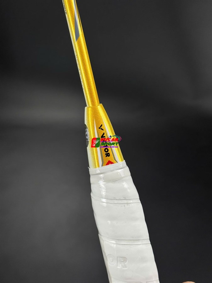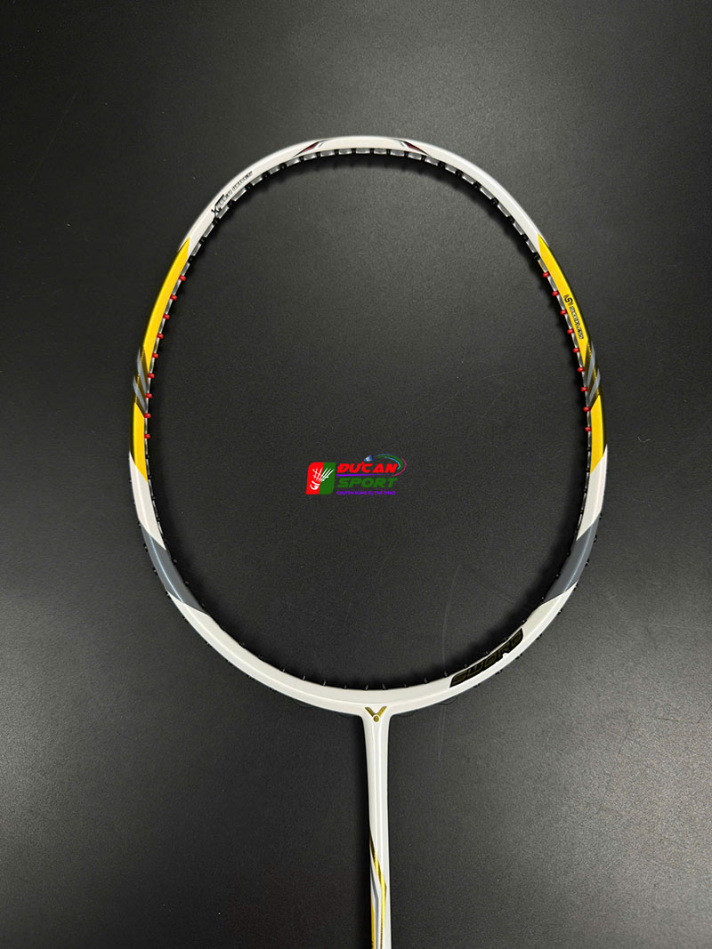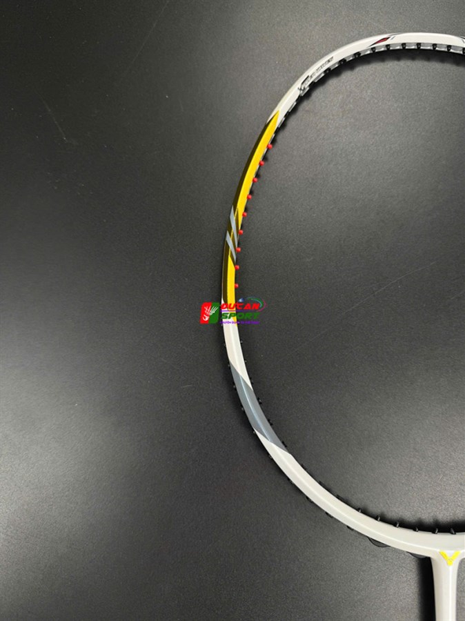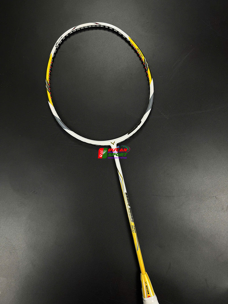 Vợt Cầu Lông Victor Brave Sword LTD khoác lên mình lớp sơn màu Trắng Sứ chủ đạo. Nổi bật trên nền trắng là các họa tiết màu Vàng Gold chạy dọc theo khung vợt và thân vợt, kết hợp cùng các chi tiết màu Đen và Xám. Sự phối màu này tạo nên độ tương phản cao, khiến cây vợt trông như một món trang sức đắt tiền trên sân cầu, thu hút mọi ánh nhìn ngay từ khi bạn bước ra sân.