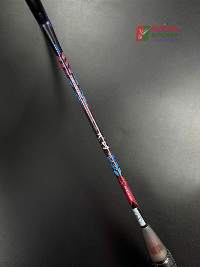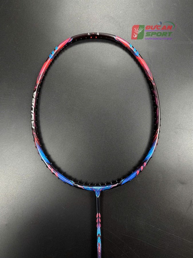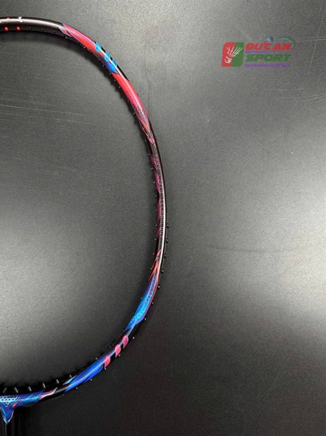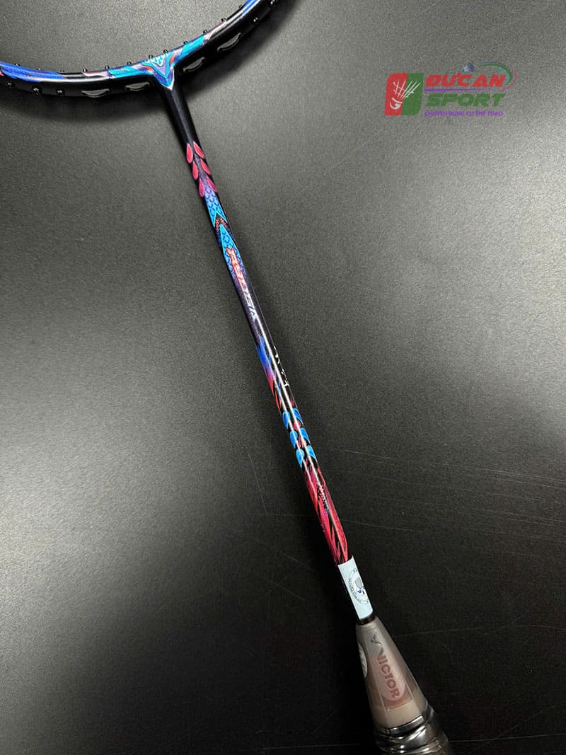 Nổi bật trên nền đen là các họa tiết decal màu Xanh và Đỏ đan xen, tượng trưng cho sự hòa quyện giữa Lửa và Băng, hay Rồng cuộn. Đặc biệt, trên thẻ bài đi kèm và thân vợt xuất hiện hai chữ Hán tự "天選" (Thiên Tuyển) – nghĩa là "Sự lựa chọn của trời" hay "Kẻ được chọn". Điều này không chỉ nâng tầm giá trị sưu tầm mà còn mang lại cảm giác tự tin, "át vía" đối thủ ngay khi bước vào sân.