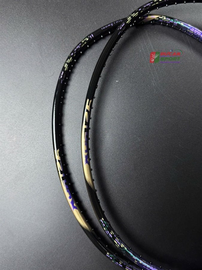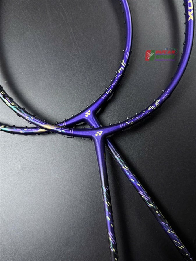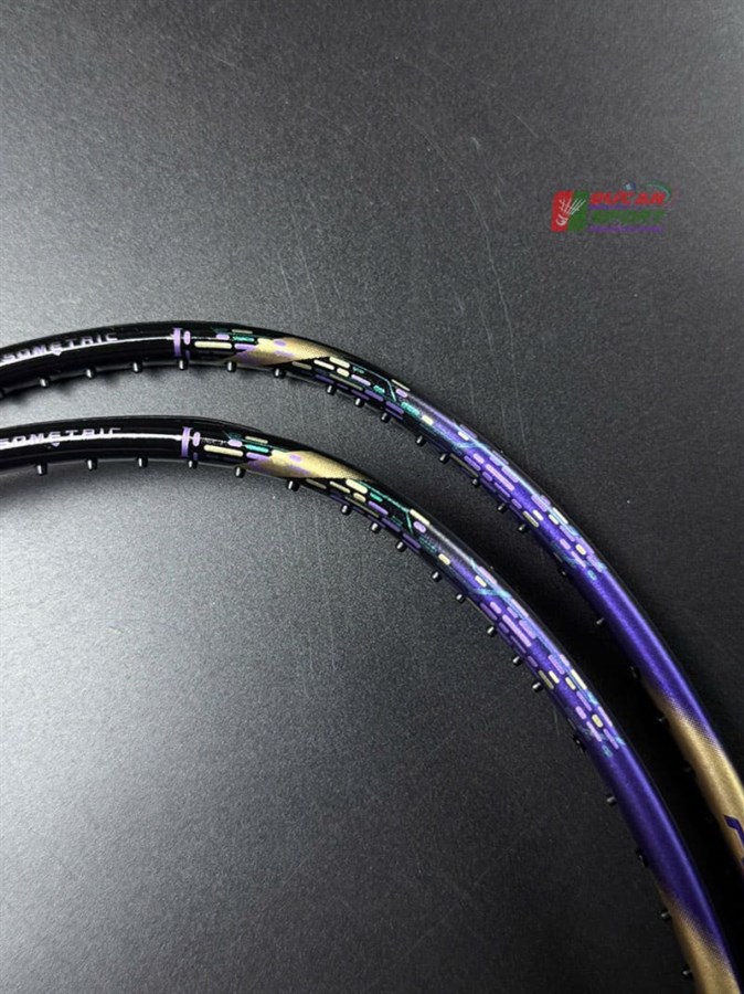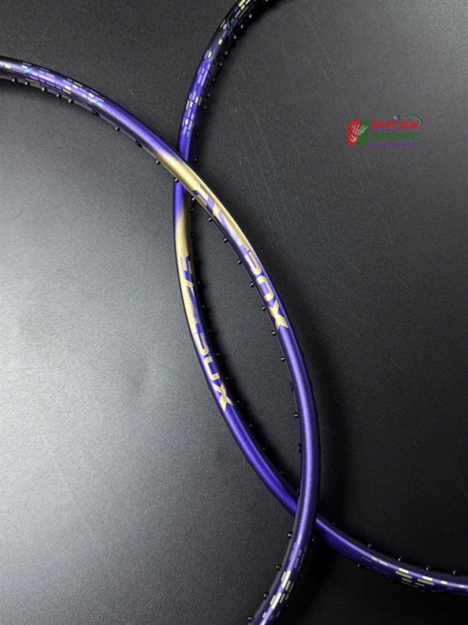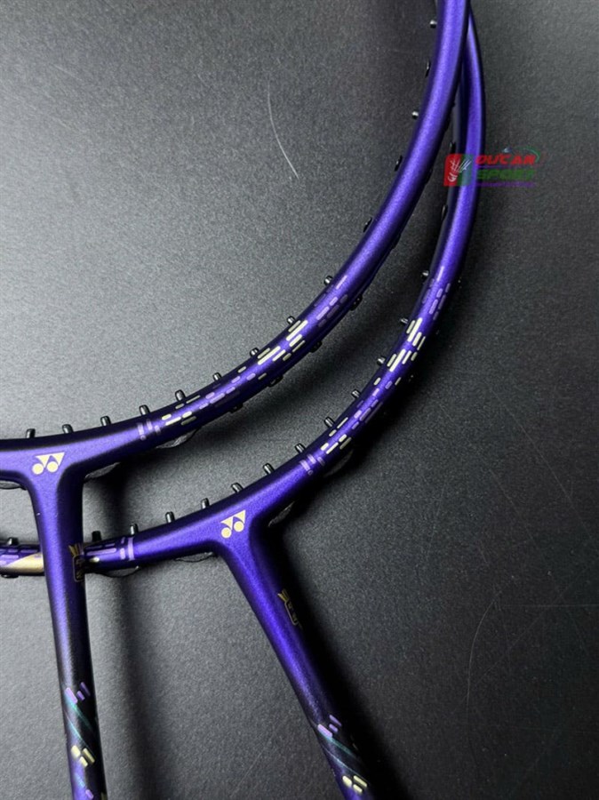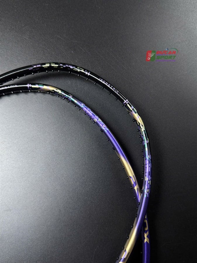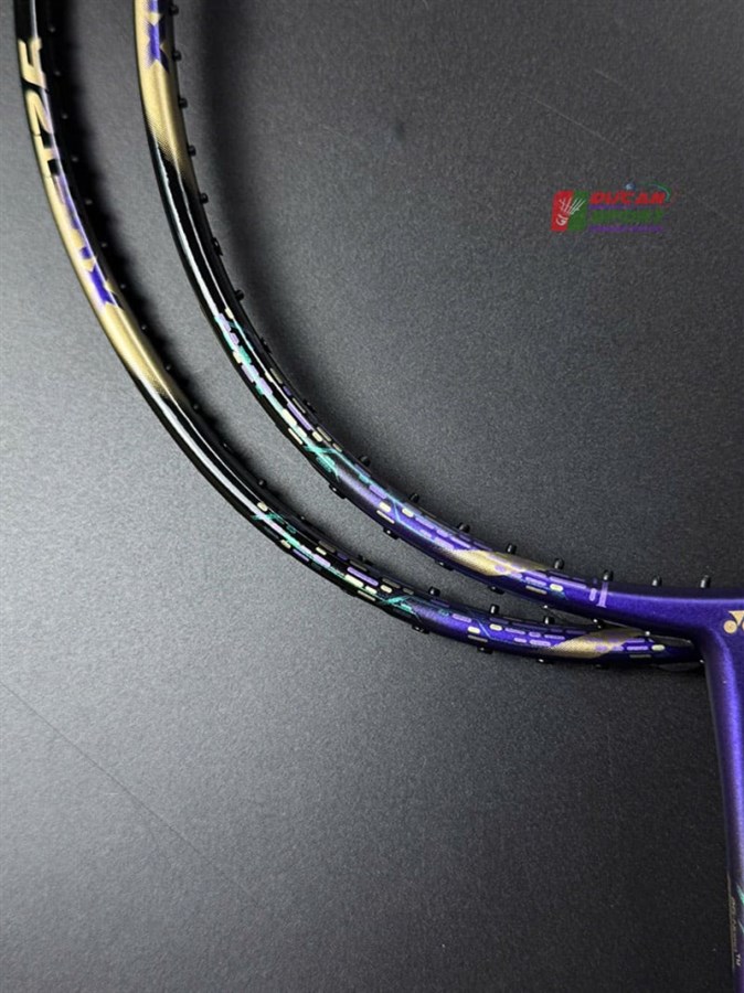 Điểm khác biệt lớn nhất của phiên bản China Limited so với bản thường chính là ngôn ngữ thiết kế mang đậm tính "Hoàng gia" và bí ẩn. Thay vì tông vàng lạc đà quen thuộc, phiên bản này khoác lên mình lớp sơn màu Tím Than kết hợp với các chi tiết Đen và Vàng Kim. Màu tím tượng trưng cho sự huyền bí và quý phái, thường thấy trong các thiết kế dành cho đội tuyển quốc gia Trung Quốc. Các họa tiết decal được in chìm và xử lý tinh xảo, tạo hiệu ứng chiều sâu khi có ánh sáng chiếu vào. Logo Yonex màu trắng bạc nổi bật trên khung và thân vợt, tạo điểm nhấn tương phản mạnh mẽ.